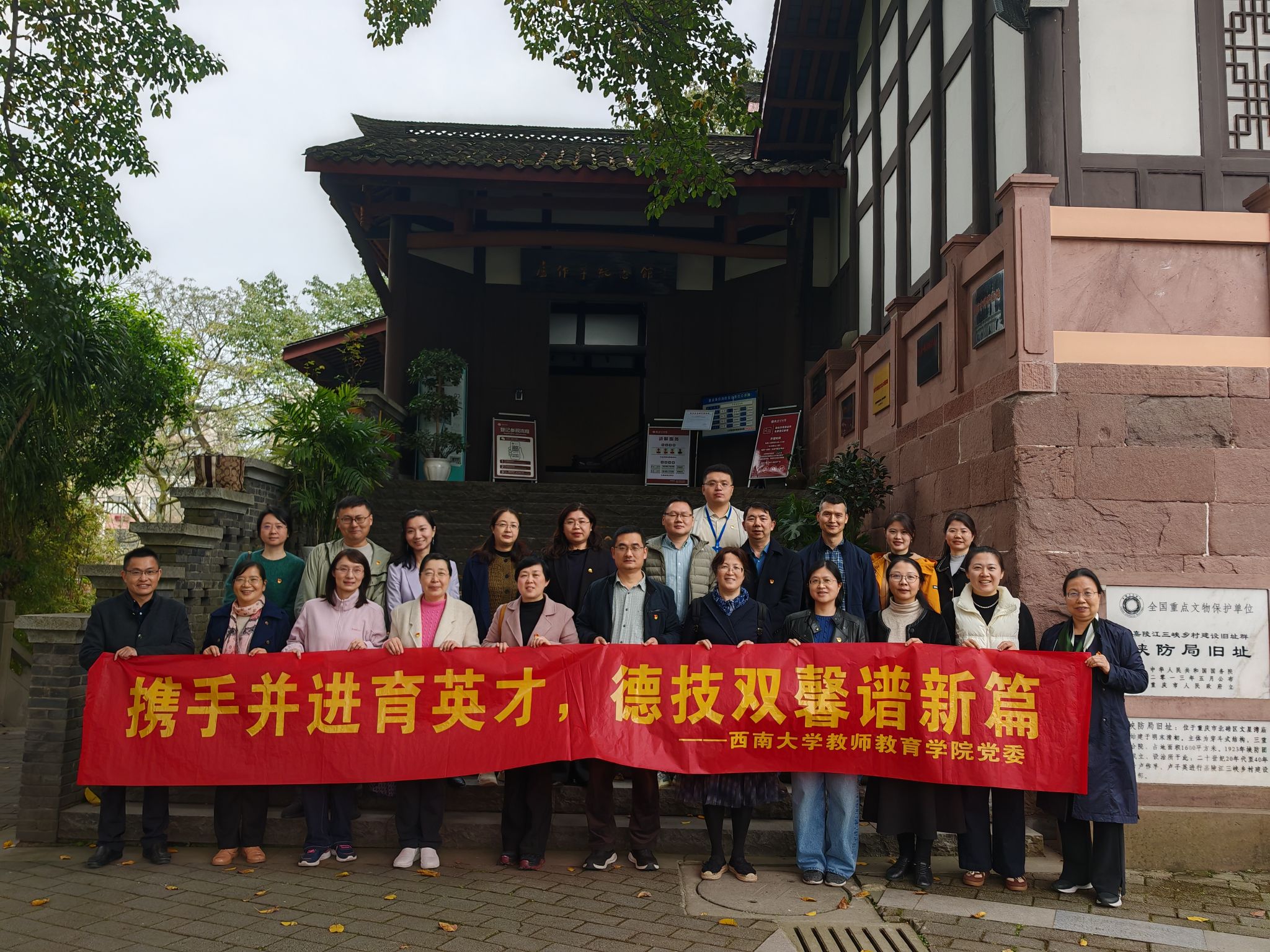 之后,全体党员赴卢作孚纪念馆开展实地研学。同志们通过详实的史料、珍贵的文物,深入了解了爱国实业家、教育家卢作孚先生实业救国、教育救国的光辉事迹,深刻感悟其“公而忘私,为而不有”的崇高精神和强烈的家国情怀。卢作孚先生对教育事业的倾力投入和“知行合一”的实践,让作为教育工作者的党员同志们产生了强烈共鸣。