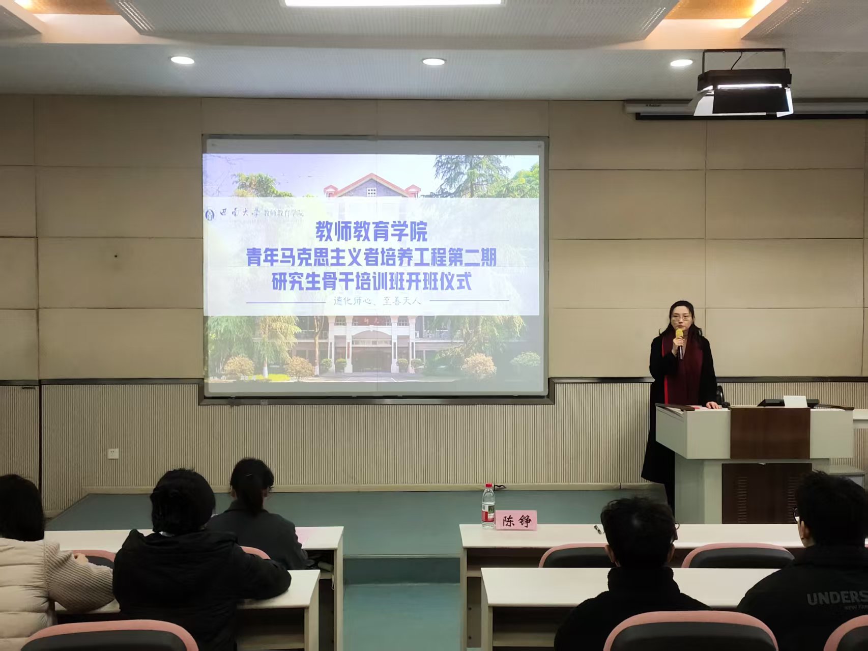 仪式在庄严的国歌声中开启。团委书记郑婷详细介绍了本期培训班培养方案,鼓励学员珍惜学习机会在理论与实践结合中提升自我。杨之丽代表全体学员承诺,将潜心学习、知行并进,努力成长为政治过硬、专业精湛的新时代卓越教师后备力量。